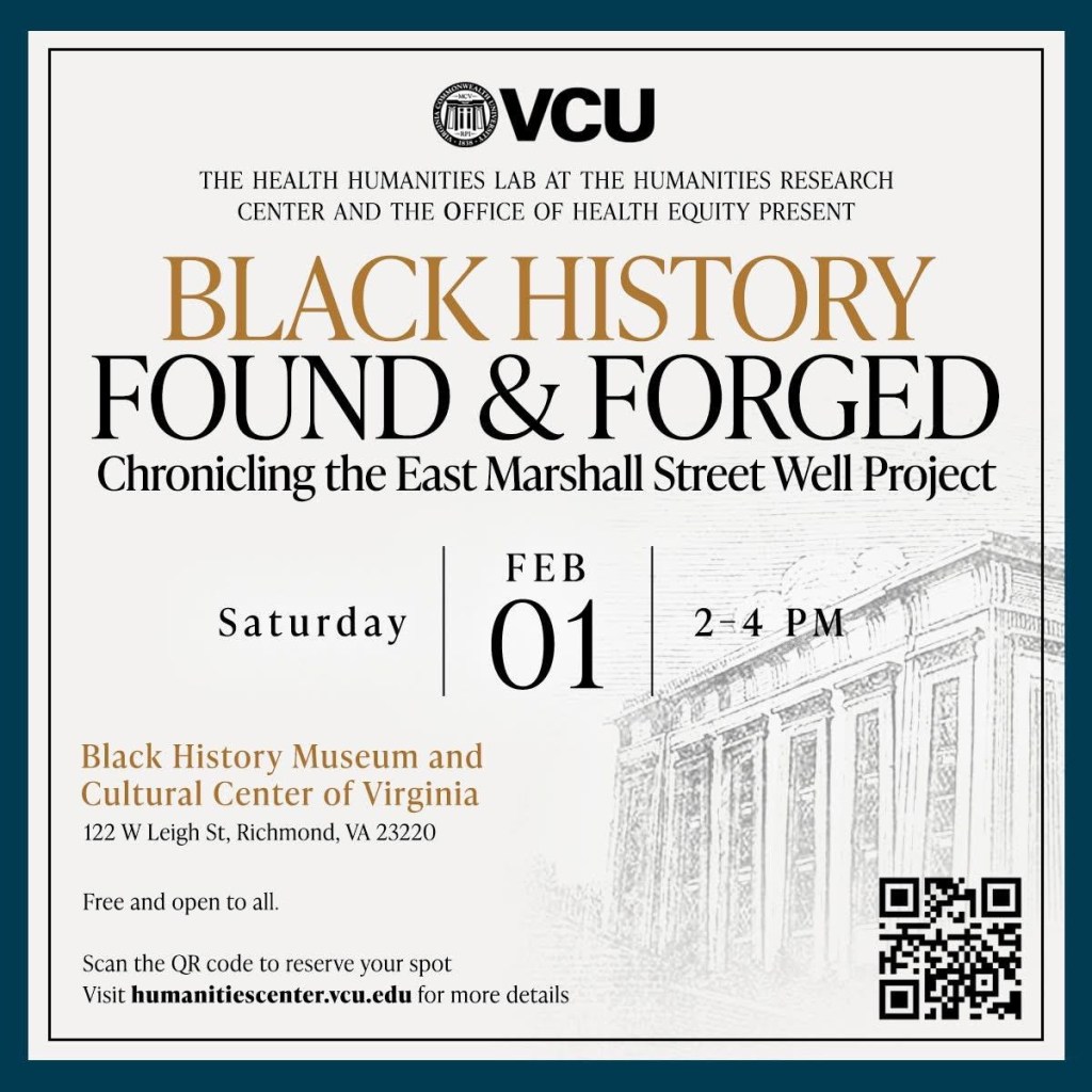 The East Marshall Street Well Project works to address some of the exploitative medical practices perpetrated by Virginia Commonwealth University on Richmond’s Black communities since the 1800s. Representatives from the community and VCU will contextualize this history and discuss efforts to create oral history and memorialization projects that work toward reparative justice. Please join us during Black History Month to reflect upon important local Black history in the making.