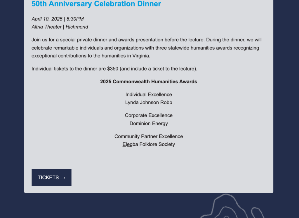 Lynda Johnson Robb, Dominion Energy and Elegba Folklore Society will be honored with “Commonwealth Humanities Award”