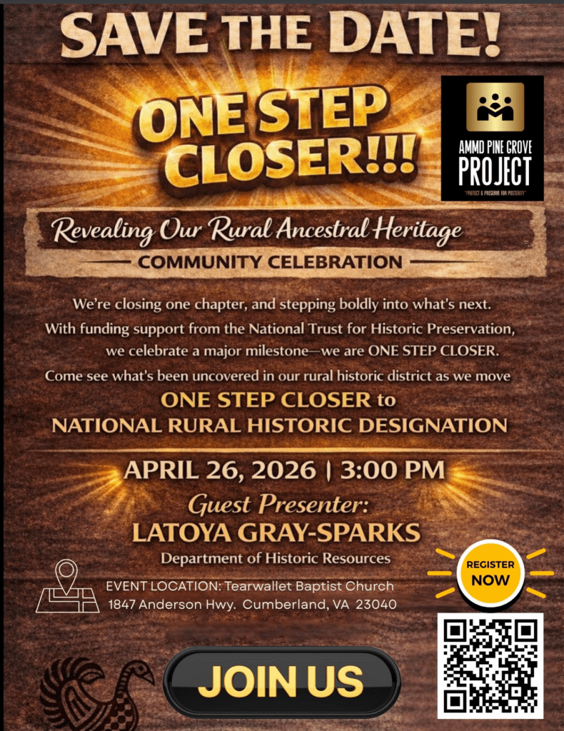 The primary objective of the AMMD Pine Grove Project is to protect, restore, and repurpose the historic Rosenwald Pine Grove Elementary School to serve the entire county as a cultural center, with particular emphasis on honoring the contributions of African American and Native American communities to Cumberland’s rich history.