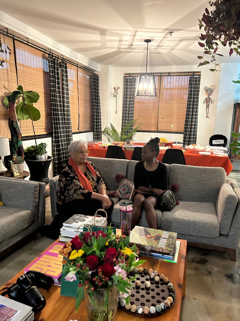 The 2025 Family Reunion, hosted by Kwame Onwuachi at Salamander Resort in Middleburg, Va. last August, included author and documentary filmmaker Deb Freeman (left holding platter during a family-style luncheon). Freeman delivered remarks for a panel discussion about renowned culinary chef Edna Lewis (right). Photo of Deb Freeman by Clay Williams.
